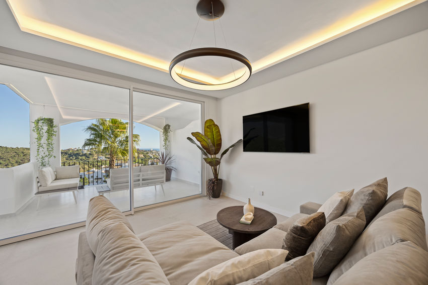 Set in the peaceful hills of Benahavís, this three-bedroom apartment is located within the secure Altos de la Quinta community, offering beautiful views of the Mediterranean, golf course, and surrounding mountains, just minutes from Marbella and Puerto Banús.